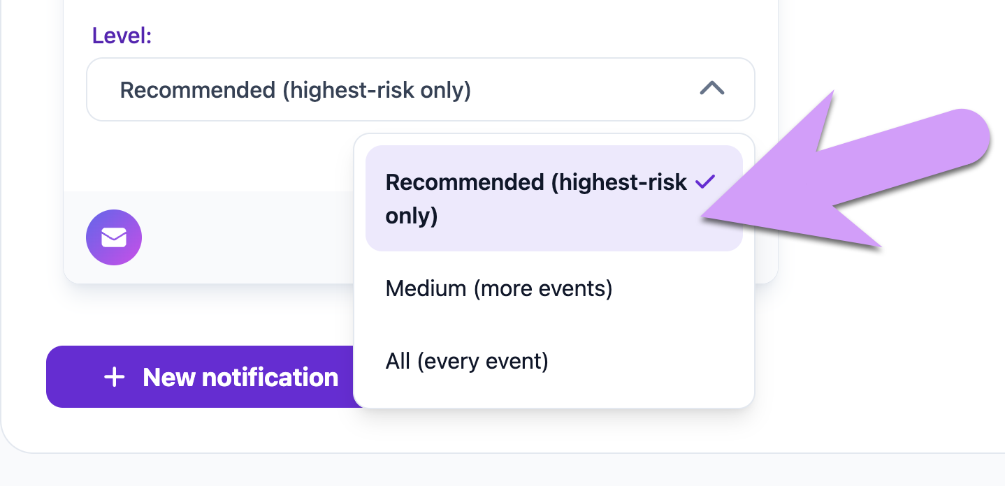 Not every security event is equally urgent. To help you get the right amount of information without being overwhelmed, there are three notification levels: